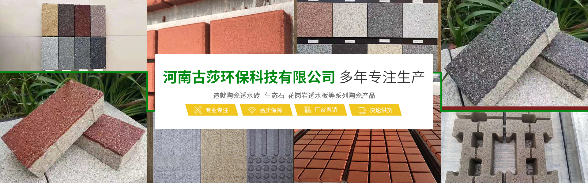 河南古莎環(huán)保科技有限公司總坐落于交通樞紐城市鄭州,是一家具備研發(fā)、生產(chǎn)、銷(xiāo)售能力為一體的綜合性現(xiàn)代化陶瓷企業(yè)。本公司專(zhuān)業(yè)生產(chǎn)經(jīng)營(yíng)生態(tài)陶瓷透水磚、生態(tài)鋪石、PC仿石材透水磚、PC仿石材景墻磚、普通透水磚、燒結(jié)磚等系列產(chǎn)品,完善的研發(fā)團(tuán)隊(duì),完善的生產(chǎn)流水線(xiàn)設(shè)備,打造完善的陶瓷企業(yè)。古莎環(huán)保科技現(xiàn)代化陶瓷企業(yè)是美化城市,改善生活環(huán)境質(zhì)量的生態(tài)環(huán)保產(chǎn)品,可廣泛應(yīng)用于公共建筑廣場(chǎng)、城市道路、公園、藝術(shù)景觀(guān)、廊道、房地產(chǎn)、別墅住宅小區(qū)、地鐵口、車(chē)站、高速公路服務(wù)區(qū)等。古莎環(huán)保科技在原有陶瓷企業(yè)基礎(chǔ)上,另拓展園林綠化、市政施工、瀝青包工包料施工、公路維修等業(yè)務(wù)板塊,專(zhuān)業(yè)培訓(xùn)了一些園林綠化、市政施工技術(shù)人員,并有多年的施工養(yǎng)護(hù)經(jīng)驗(yàn)以及建筑工程經(jīng)驗(yàn)。保證市政工程施工質(zhì)量以及園林綠化后期養(yǎng)護(hù)規(guī)范化、專(zhuān)業(yè)化。古莎環(huán)保科技所遵循的企業(yè)與品牌發(fā)展思路,是奠定在品質(zhì)與產(chǎn)品應(yīng)用之上。環(huán)保理念由我們共同倡導(dǎo),理性思考,以推進(jìn)步,感性溝通,以共建優(yōu)越。古莎環(huán)保科技與大家真誠(chéng)合作,攜手共進(jìn),為助力海綿城市建設(shè),建筑高品質(zhì)的綠色城市生活貢獻(xiàn)一份力量!